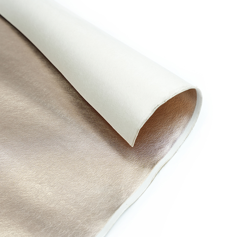 De luxe glanzende gouden lederen stof voor decoratiesamenstelling is een harmonieuze mix van polyvinylchloride (PVC) en een gesponnen stofachter, waardoor zowel duurzaamheid als een luxueuze aanraking zorgt. Met een dikte van 0,9 mm komt het evenwicht tussen veerkracht en een weelderig gevoel. Het PVC-materiaal leent zich voor eenvoudig onderhoud, waardoor het een ideale keuze is voor langdurige schoonheid in verschillende toepassingen.